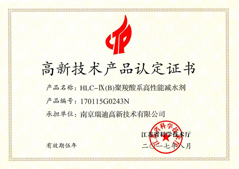 高新技术产品HLC-IX(B)聚羧酸系高性能减水剂 |