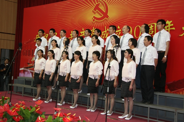 为庆祝中国共产党成立90周年,大力颂扬党的丰功伟绩、激发广大党员干部的爱国热情。2011年6月23号,我公司参加了由南京水利科学研究院党委、院工会联合举行的“颂歌献给党”——纪念建党90周年红歌演唱会。