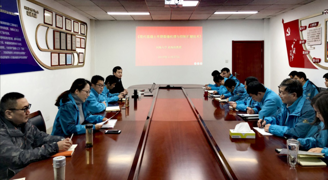 2019年11月27日,乐鱼官方网站特邀河海大学土木与交通学院赵海涛教授,就混凝土裂缝等关键技术问题开展学术交流座谈会,会议由公司党支部书记、副总经理祝烨然主持,徐志峰董事长、唐修生总工程师及公司技术部、事业发展部等部门负责人和相关人员参加了交流座谈。