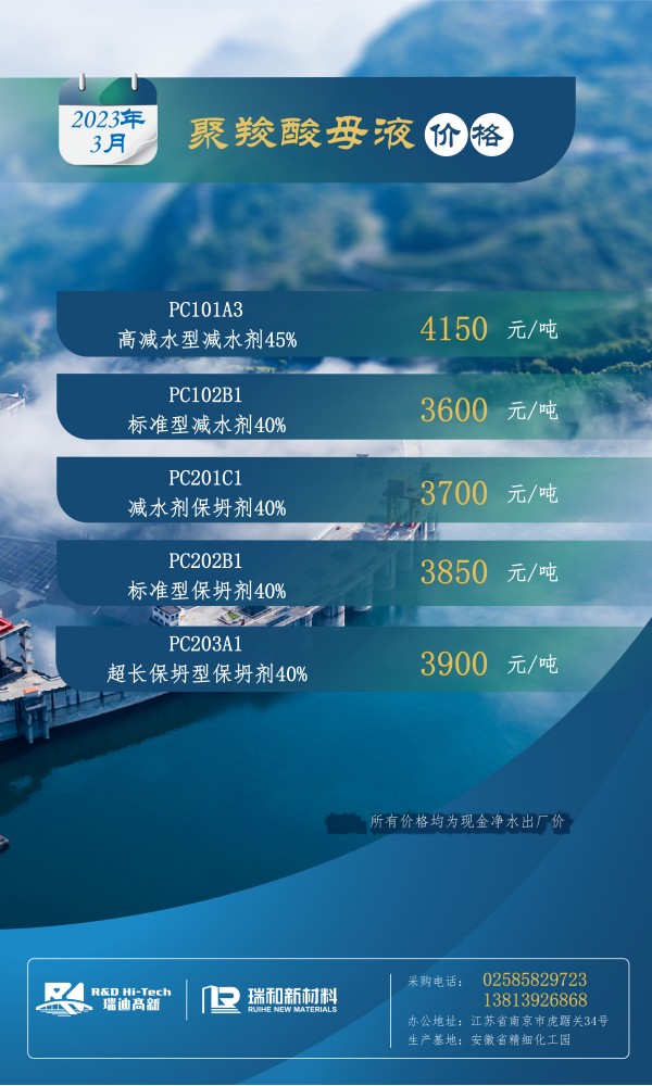 【瑞迪高新聚羧酸母液价格】丨2023年3月