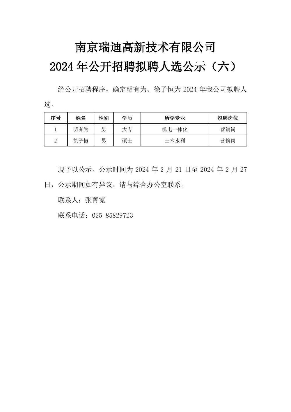 乐鱼官方网站2024年公开招聘拟聘人选公示(六)
