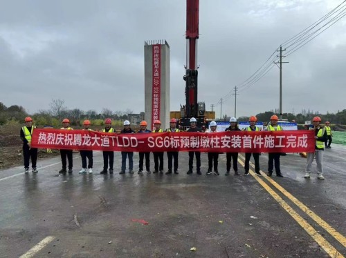 | 我司参建的预制墩柱于常州腾龙大道完成首件安装 | |
